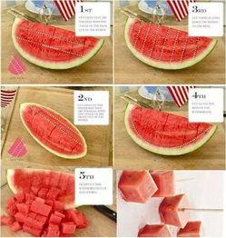 1. 西瓜:用刀沿着瓜肉和瓜皮的交界处切一圈,然后用手轻轻一掰,就能得到一块块整齐的西瓜肉。